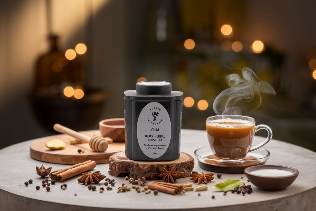 Every blend is woven in house at Foodie Tasting Room, Jefferson, Texas—where organically grown teas, herbs, and fruits are transformed into small-batch fusions of light, spirit, and soulful pleasure.