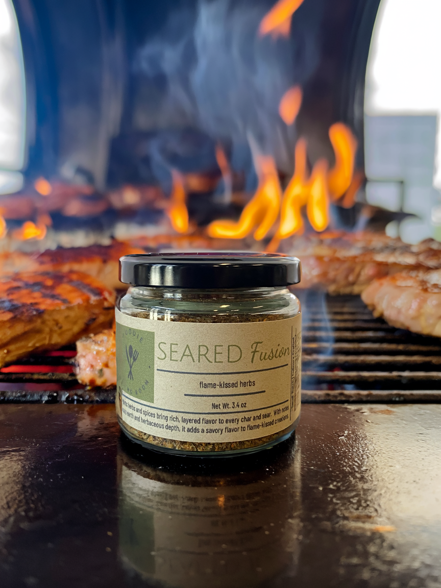 Seared Fusion is your go-to blend for bold, fire-kissed flavor. Handcrafted for high-heat cooking, this robust mix of toasted spices and aromatic herbs was made to thrive under the flame—whether you are grilling, pan-searing, or roasting. Each jar is packed with earthy, savory ingredients like smoked paprika, cumin, garlic, rosemary, and black pepper, all working together to create a deep, layered flavor and a crave-worthy crust.