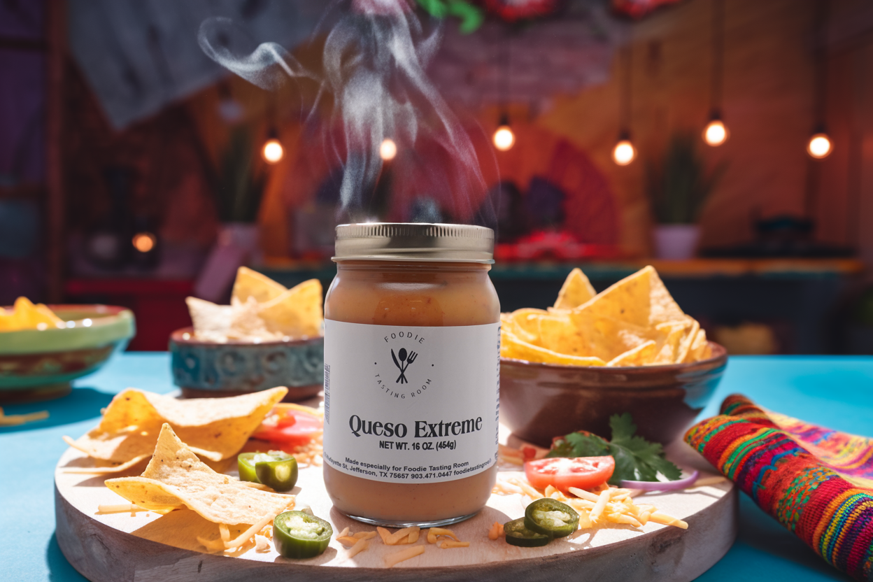 Why is our Queso so extreme? Well, that's because it down the road it found Mr. Jalapeno and Mr. Habanero to create something special. With a tangy rich cheese blend and of course hot peppers, this queso is supppperr addicitng! Add this to your colelction of great salsa's and queso's. Our quesos are crafted in small batches using the freshest ingredients because we love making and sharing our delicious foods. 16oz Jar