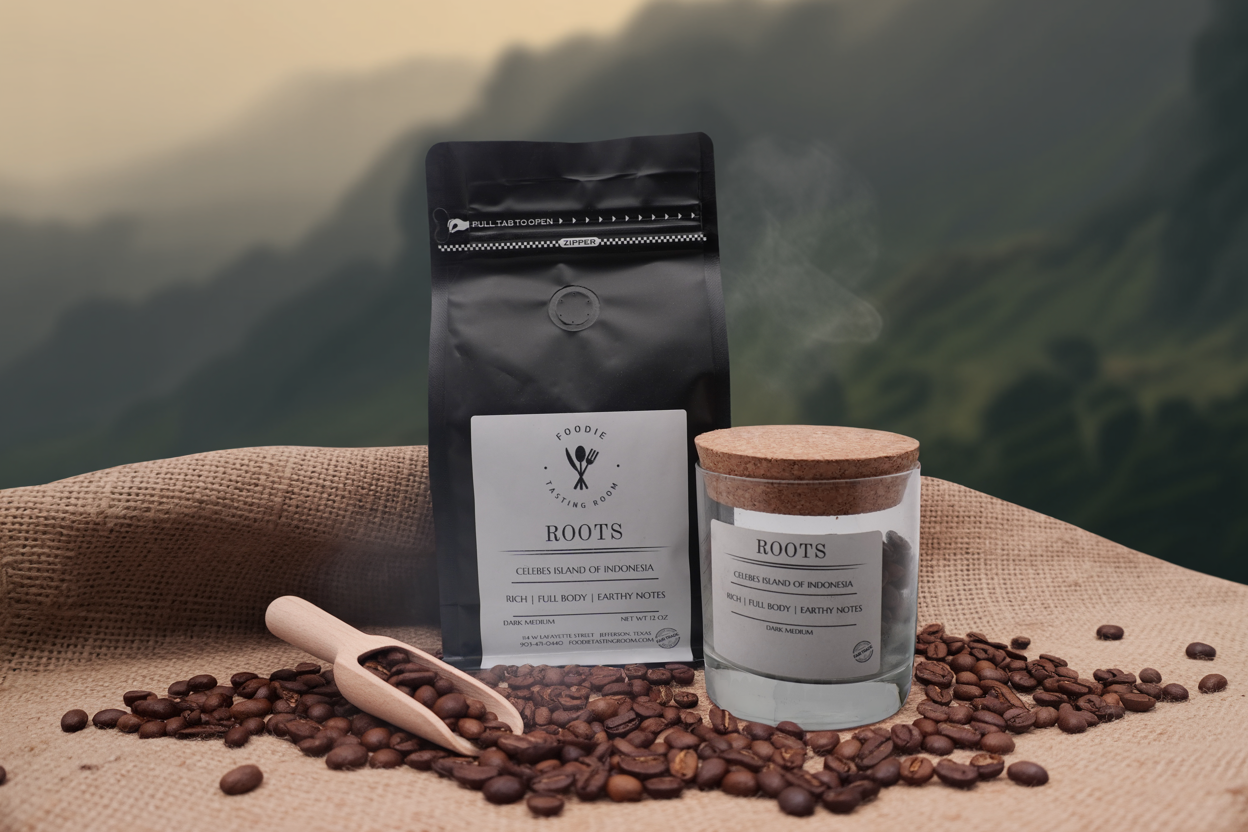 Dark-Medium Blend | grown on the Celebes islands of Indonesia very dry & high humidity | crown between 1600 - 2000 MASL | semi-washed with a hint of dry-processed & dark roast coffees | rich, full-bodied, offering a complex flavor with earthy notes.