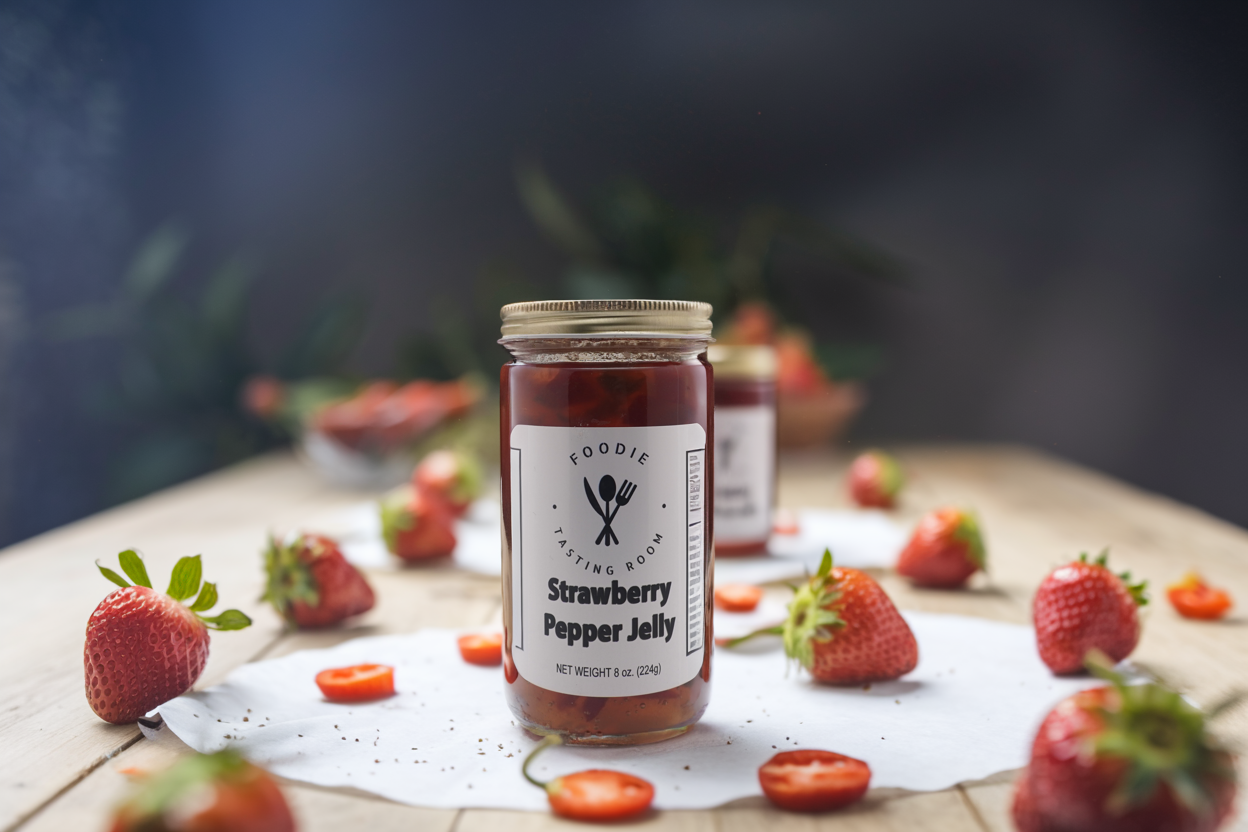 Our jalapeno pepper jelly mixed with strawberries is a best seller. The great taste of strawberry blended with the tart and zingy taste of jalapeno pepper jelly. It is fabulous!!! 8oz Jar