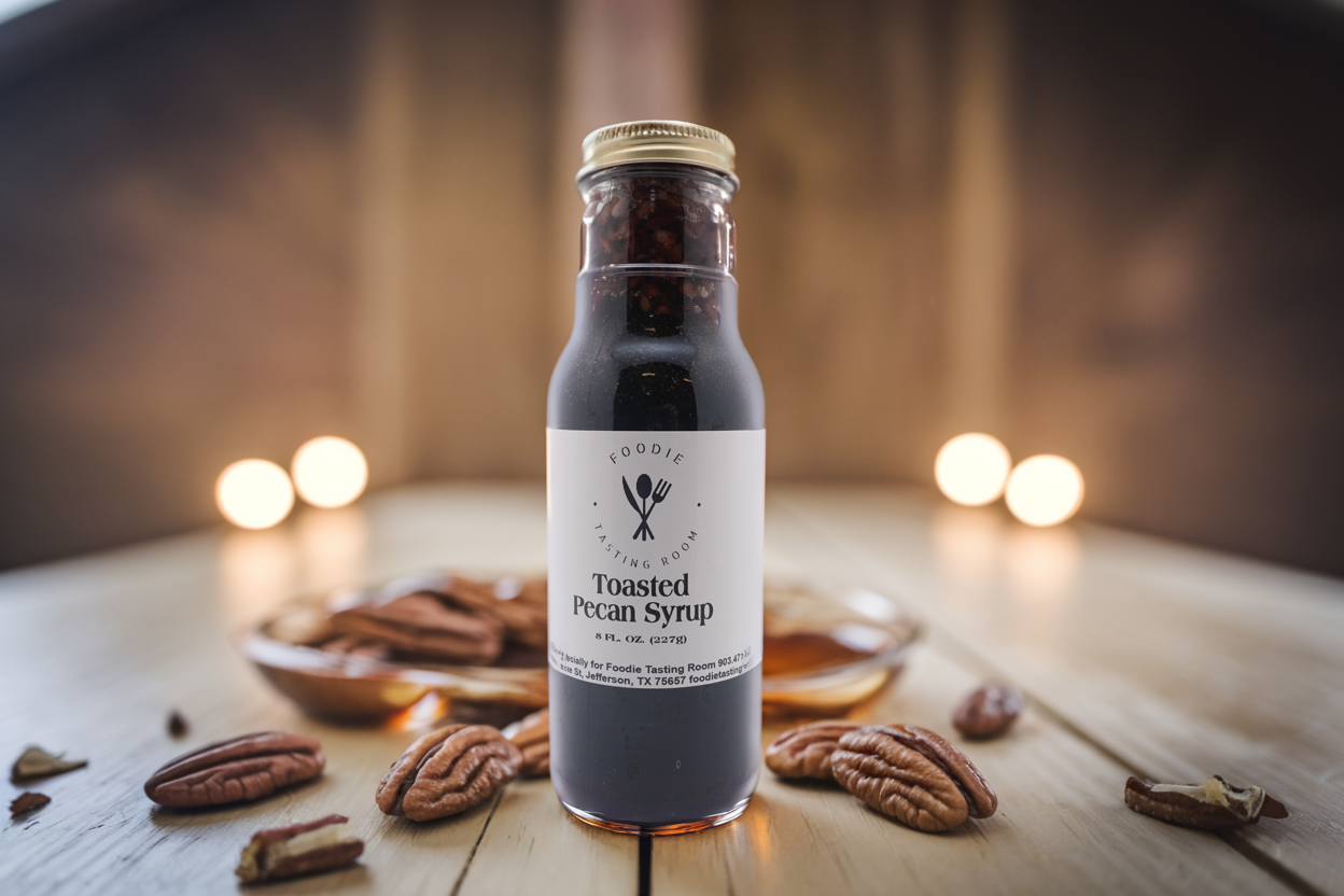 This Roasted Pecan Syrup is made with real roasted pecans, which gives it a wonderful sweet and buttery toasted nut flavor. Use it on pancakes, waffles, French toast or even for baking. 16oz Jar