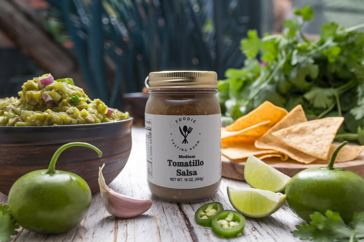 Many folks think that tomatillos are just green, unripe tomatoes, but that's just wrong. They're a vegetable with its own separate identity. When you find them in the produce section at the supermarket they're still in their crispy, tan husks, which must be removed before they're used. Tomatillos make a great salsa. You'll agree when you taste our tomatillo salsa. We add some charred tomatoes and Serrano chiles, plus a handful of cilantro to make a taste that's mighty pleasing on a corn chip. Great on baked potatoes and grilled fish too. Our salsas are crafted in small batches using the freshest ingredients because we love making and sharing our delicious foods. 16oz Jar